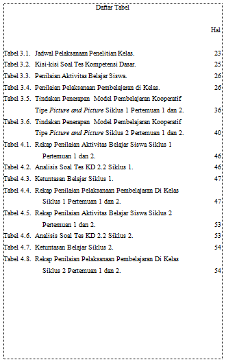 Daftar Tabel dan Daftar Lampiran PTK || Model Pembelajaran Kooperatif Tipe Picture and Picture Bagian 7